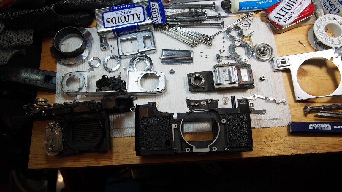 I'm working on someone's Contax IIIa. Nice camera and has one of the smoothest helicals that I've come across. The rangefinder contrast is poor, and I cannot correct that (without placing some type of film on one of the prisms).