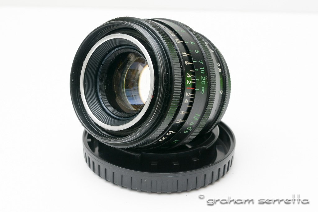 Now here's a thing. I screwed the J-8 into a T-Mount adaptor (for Nikon F) and it won't focus anywhere near infinity. Farthest focus distance is around 30cm. It does, however, screw into the T-Mount perfectly. Would there have been a T-Mount for a rangefinder camera?