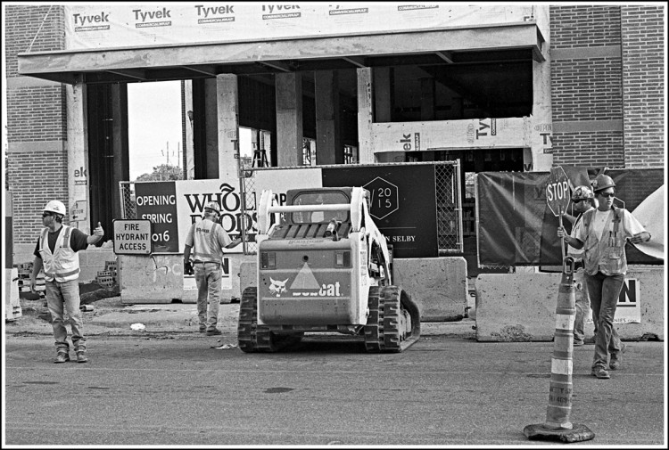 I have a Minolta X-700 that was an impulse buy when Target stopped selling it in about 1985. I've really liked it and taken many photos with it. This past summer I put a roll of Tri-X in it and used it to document some changes happening at a busy intersection in our neighborhood. The intersection is Selby and Snelling in St. Paul. Following are some photos taken in July, 2015.