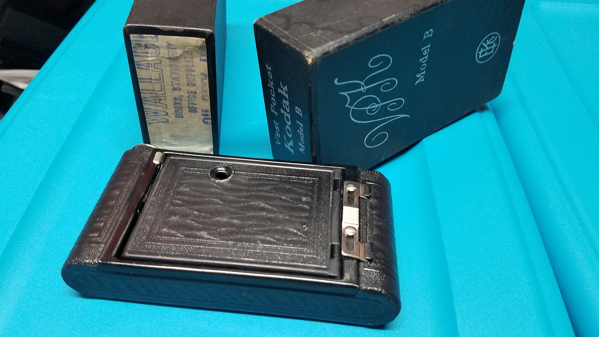 For my first camera restoration of 2018, I chose a Vest Pocket Kodak Model B that I found on eBay. The set included the near-mint camera, its manual, and a fairly complete original box. Although nearly new in most respects, the camera had a completely hardened bellows that had already separated from the front standard. This had to be rectified either to shoot with or ever sensibly display the camera.