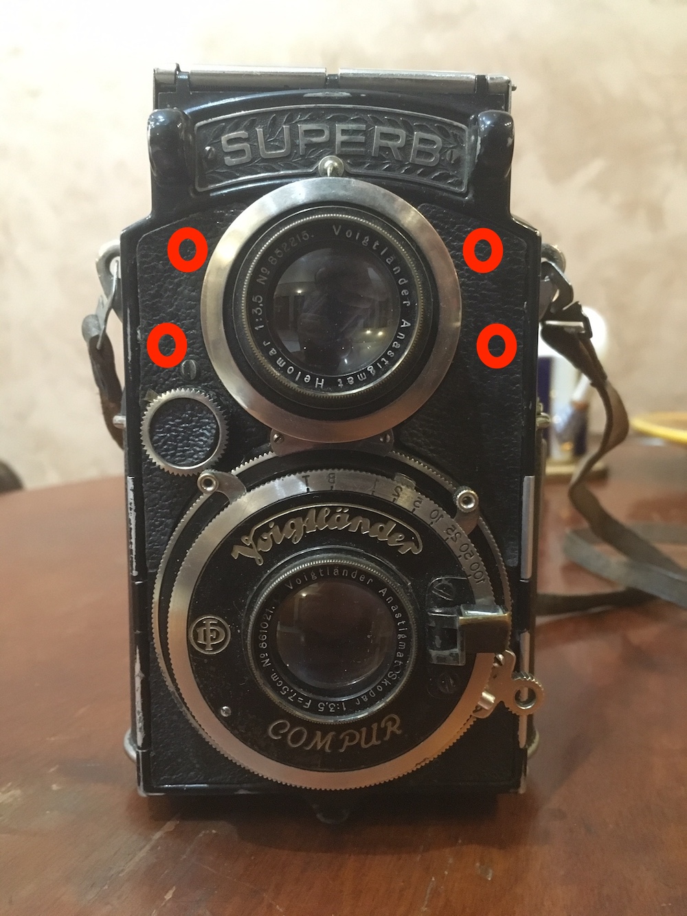 Tips and hints, some serviced this camera before, at least I could see twice. Several marks inside, some useful some not.