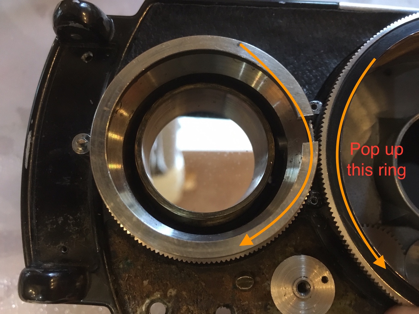 Now both lenses and shutter out, I had no idea how to take out the shutter, Im used to folding cameras so I tried what I know...
