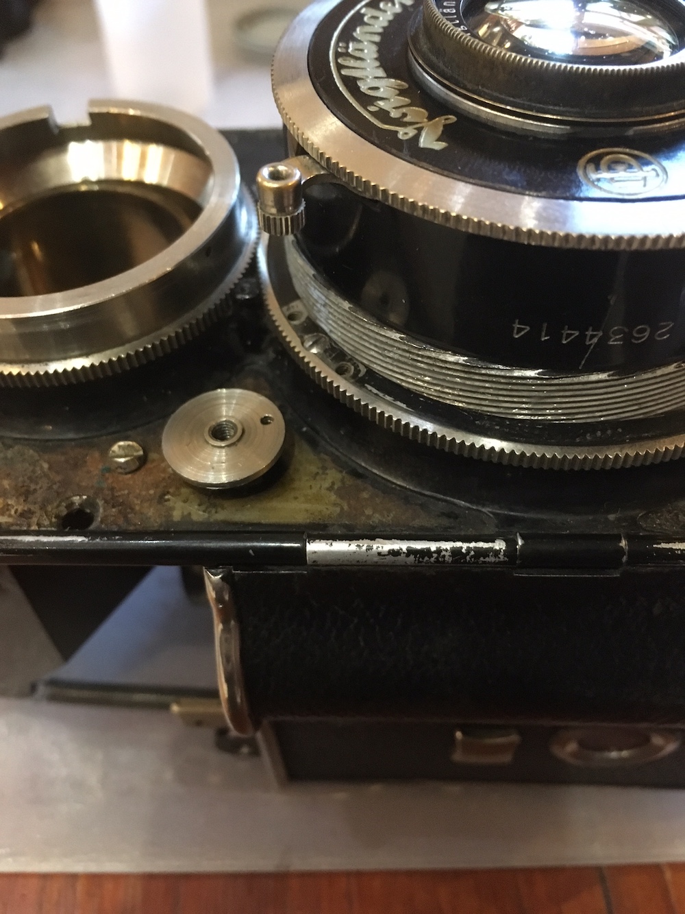 After some cleaning. That vertical "monolith" keeps the shutter vertical and not spinning along the helicoid while focusing, so it goes in and out for focusing purposes.