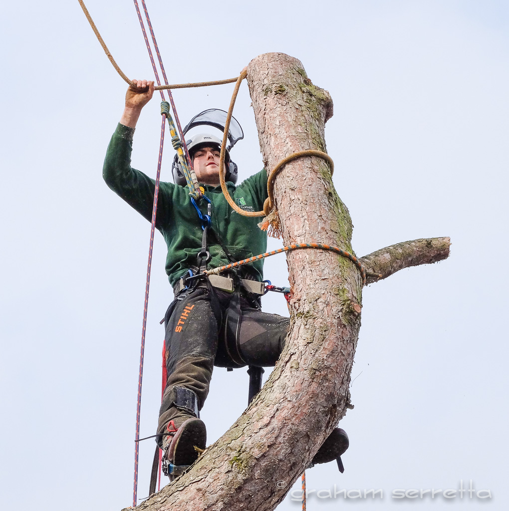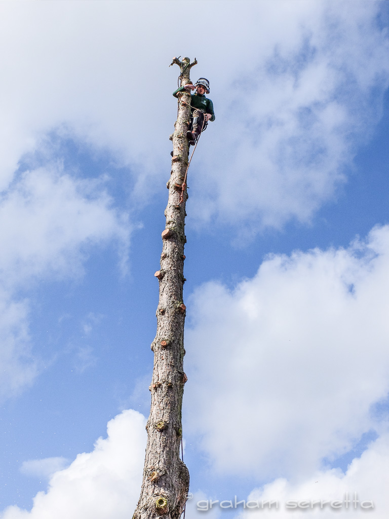 Good series, Graham. I did that once to a pine that was growing right next to my foundation. Got to within topping it when the lady who owned the house next door came ranting about the mess I was making in her yard, and demanded I immediately clean it up. So I climbed down, did what she asked, and called it a day. I was going to finish the job later that week, but someone stole my climbing gear out of the van (along with a bunch of tools), so I never got around to it. Made it look like I had a six foot Christmas tree on a long pole. The new owners completed the job.