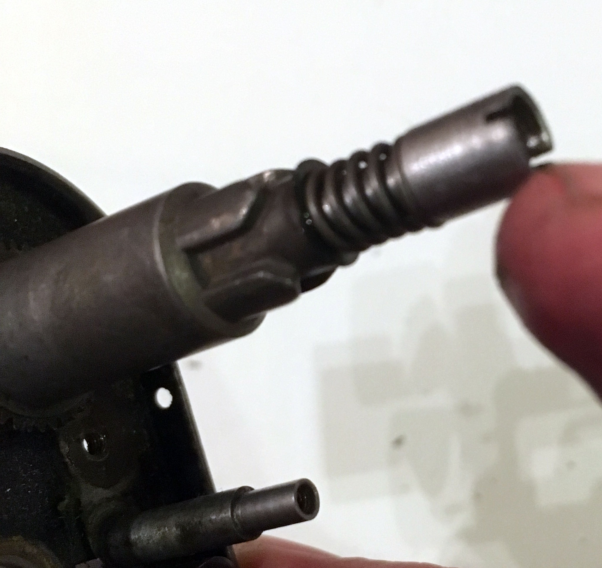 For removing the film release gear go inside and unscrew that one. We can see where it goes attached, warning! there is an spring inside that is used to let the gear to come back to rest position after the film release handle comes back to the right. That spring is attached with that screw inside that tube.