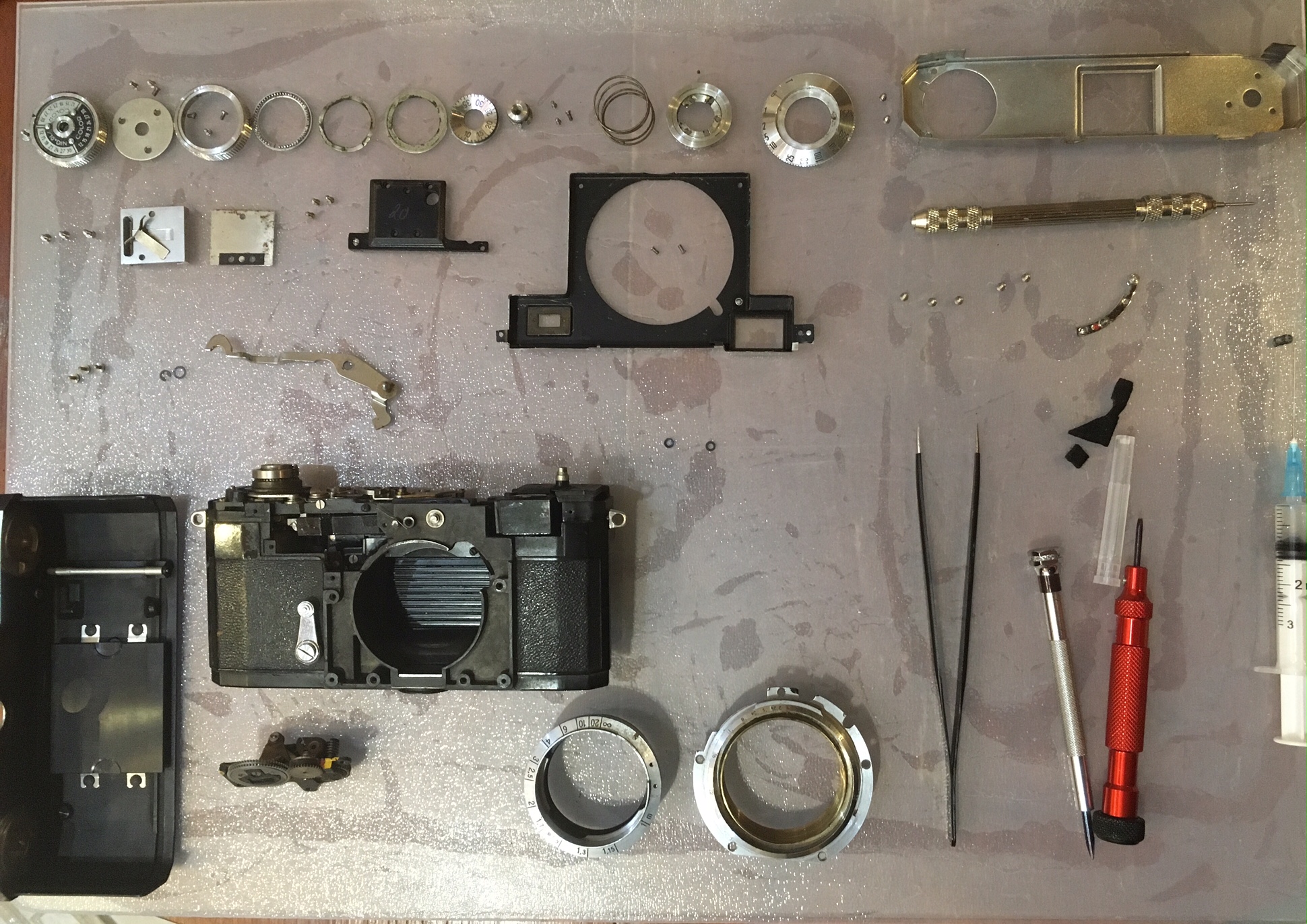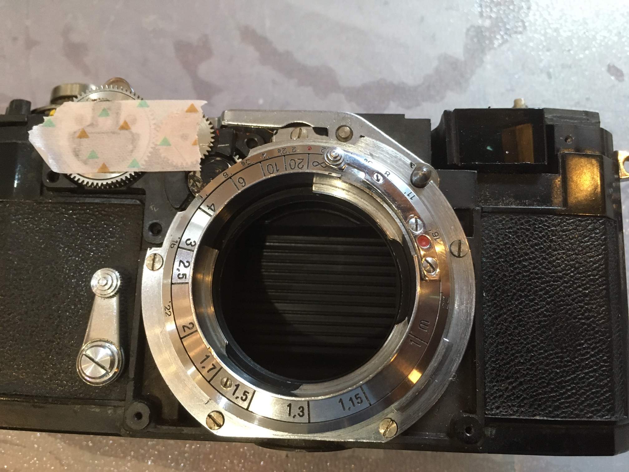 So I cleaned all the small parts and put everything together again, the most difficult part was putting the rangefinder, lens plate and infinity locking lever, which has to be done at the same time
