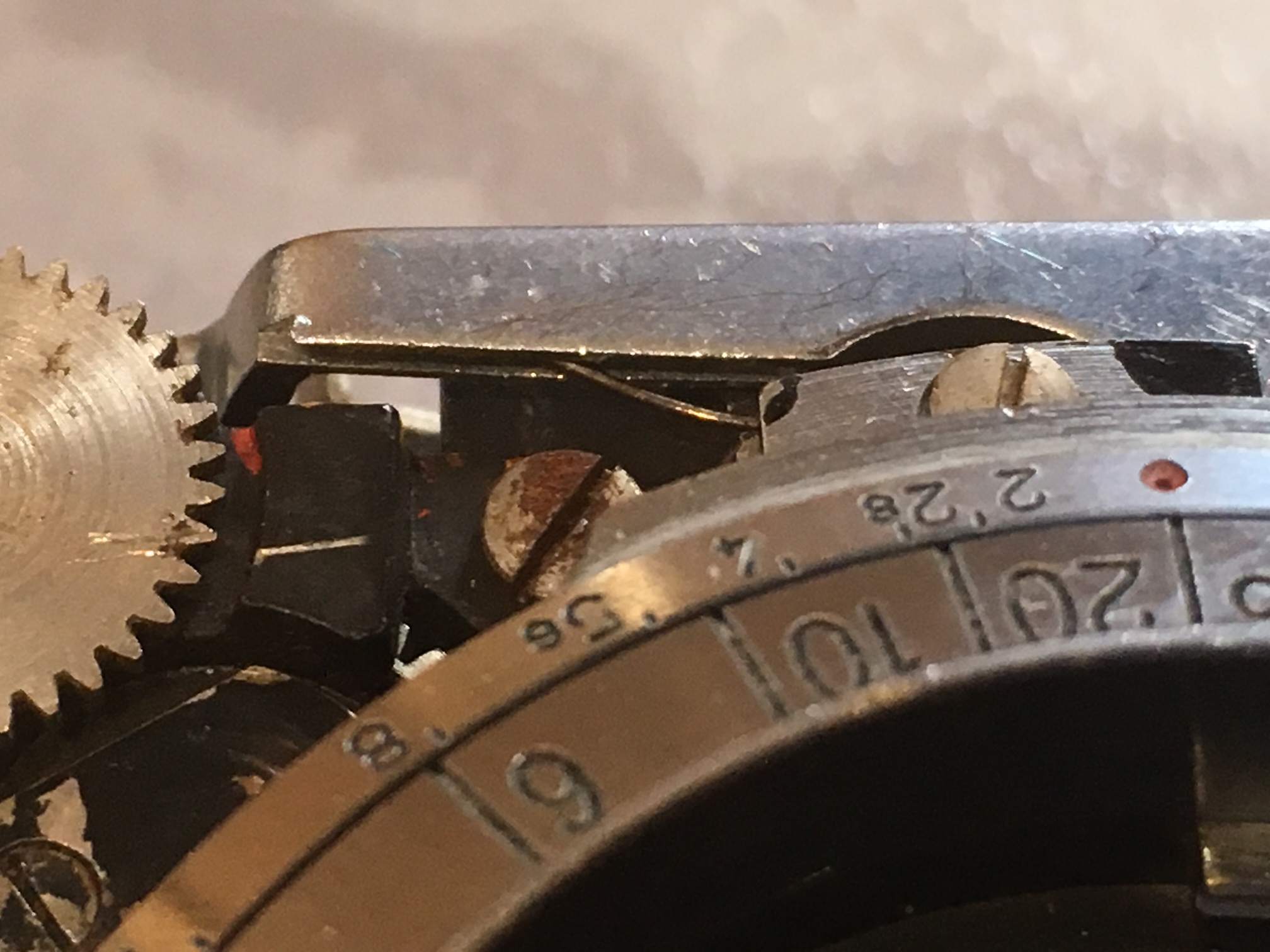 I got a little problem, when I put back everything on the Contax IIa I found out the infinity locking lever was no working, I couldn't release it, so I dismounted it again, I saw nothing faulty and then I dismounted the Contax IIIa
