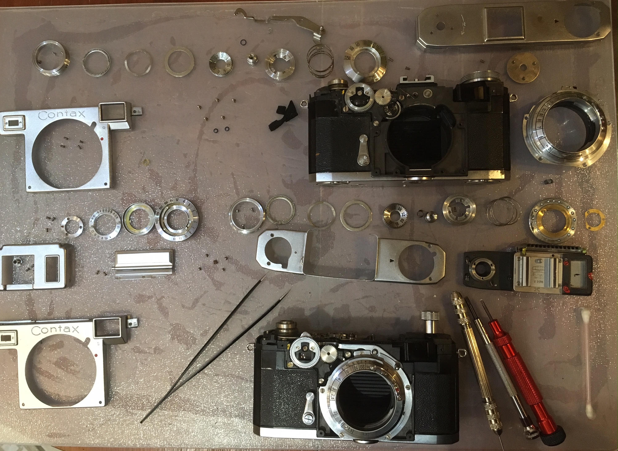 One problem I had with the Contax IIIa (also disassembled) is the little spring for the infinity locking lever, if the spring its attached (Contax IIa) its fine, but its loose (Contax IIIa) several tries are needed and a lot of patience. On this last one I found out very helpful to screw the upper screw of the lens plate in order to keep in place the spring in the small groove of the infinity locking lever. With the Contax IIa was easier and the infinity locking lever is designed if you check the left part before the bending to help the spring goes inside. Amazing engineering over there...