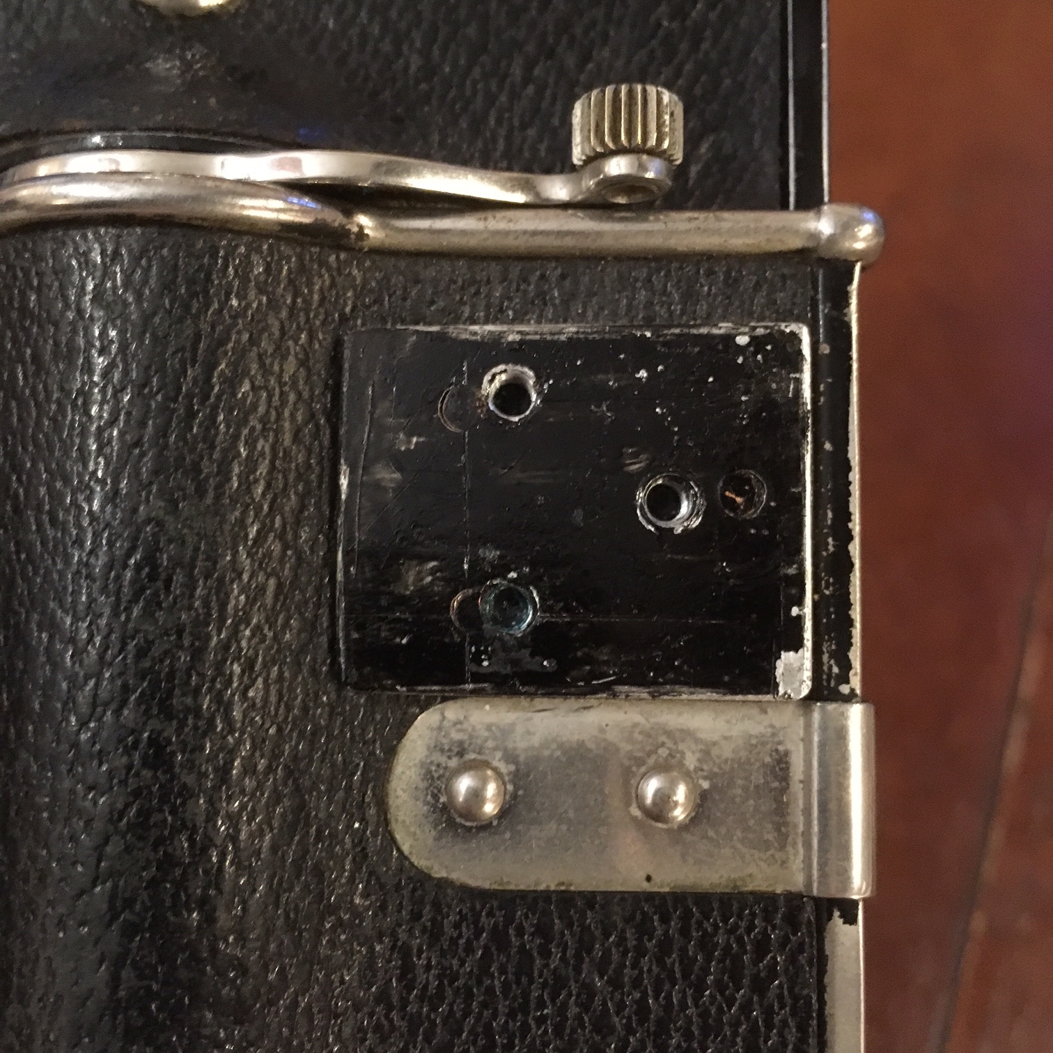 More pics in detail about the albada finder attached, I removed it and here its the holder, it can be sough the copper rivets painted in black, the metal is aluminium or similar, but I never saw such in any of my cameras before.
