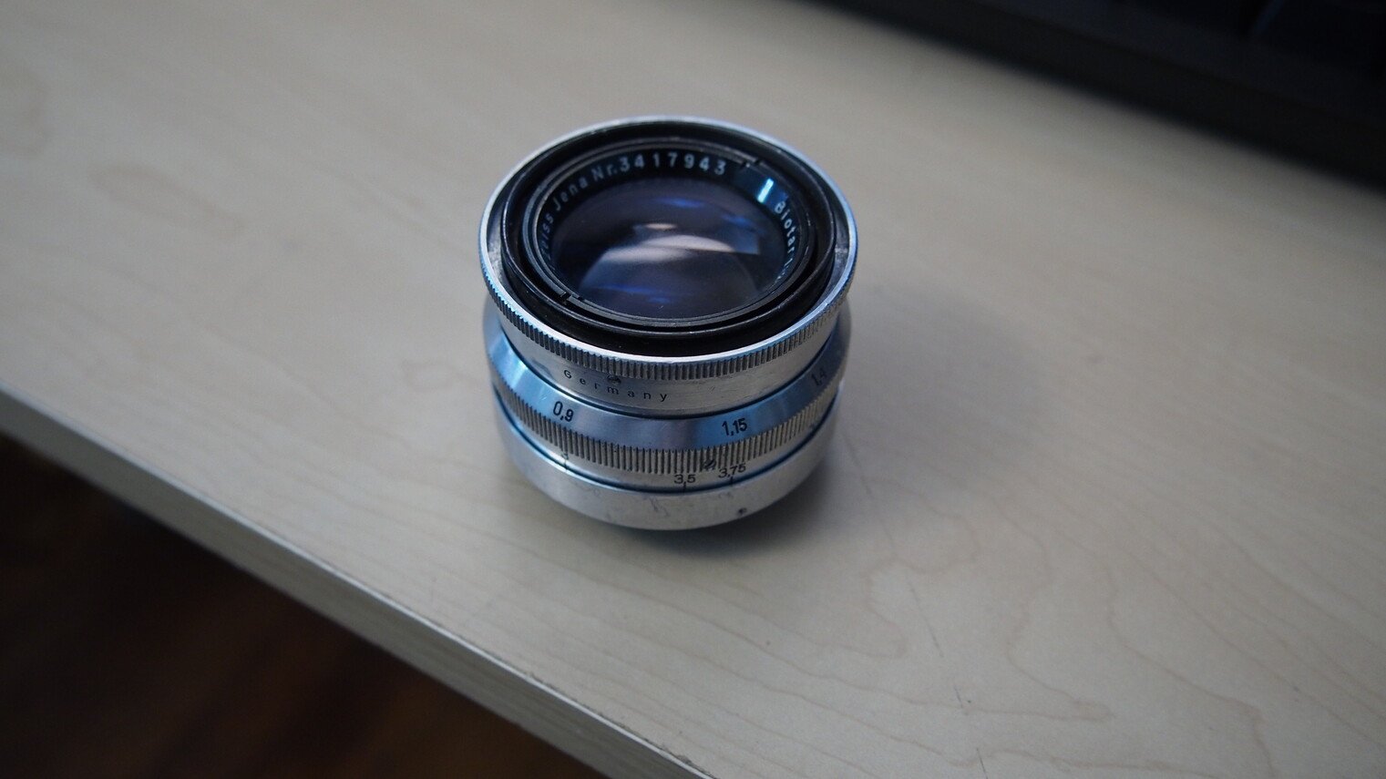 This is another camera thing that I've owned for well over a decade. It took me about two hours to disassemble, clean relubricate, reassemble and recollimate. Like many of the East German lens, the barrel and outer components are made from a light alloy, which is prone to scratching, staining and pitting, and no amount of Flitz will fix that. The photos above show it after I cleaned the lens.