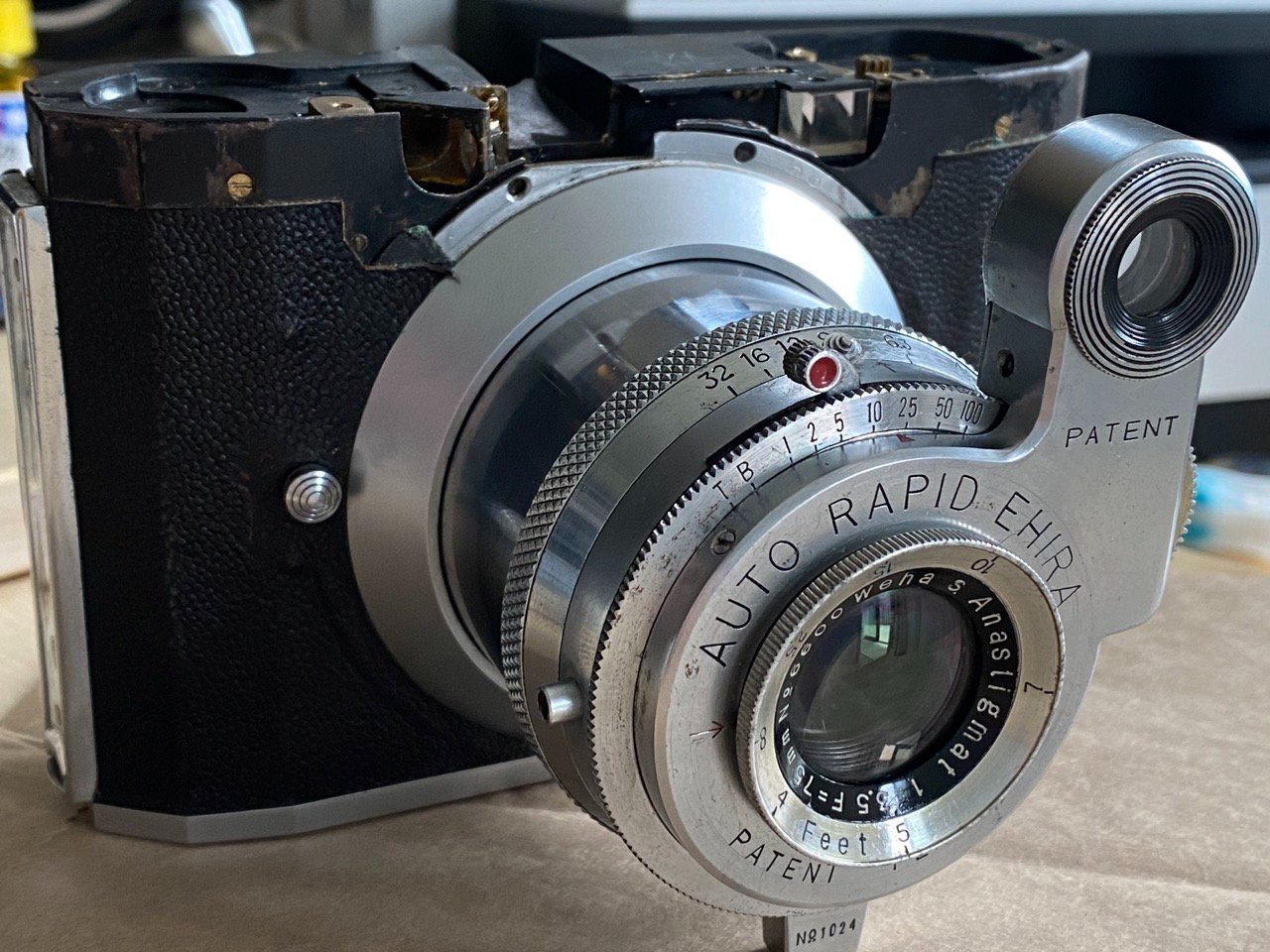 Recalling the shutter-man's comment that the shutter seemed somewhat crude in construction, and seeing that the few that I had seen elsewhere (Ebay) were often non-functioning, I thought I'd have a go at sorting the RF patch. I have sorted the RF mirrors on a couple of other cameras - the uncoupled RF on the Agifold, and the coupled RF on the wonderful Certo 6. The difference being that with those, I was able to find some online resources to guide me. With the Weha Chrome-Six, there's very little material at all out there, and what little I have found is in Japanese.