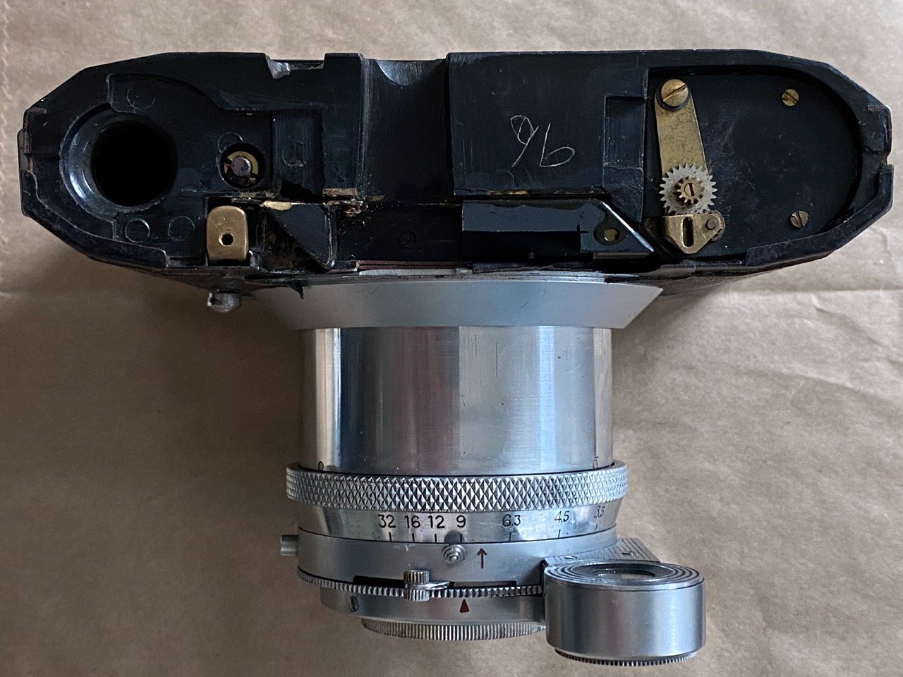 When I got it the RF patch was very faint and shutter was a bit erratic, so had the shutter CLA'd by someone that knows what he's doing ;-) He's comfortable with most camera repairs, but wasn't too keen to dig into the RF mechanism, so we left it as is. The rangefinder patch was very, very faint, so on the couple of occasions I did use it, I just used guess focussing. It ended up on the shelf with the intention that one day I'd pluck up the courage to dig into it. Given its rarity, I wasn't overly keen.