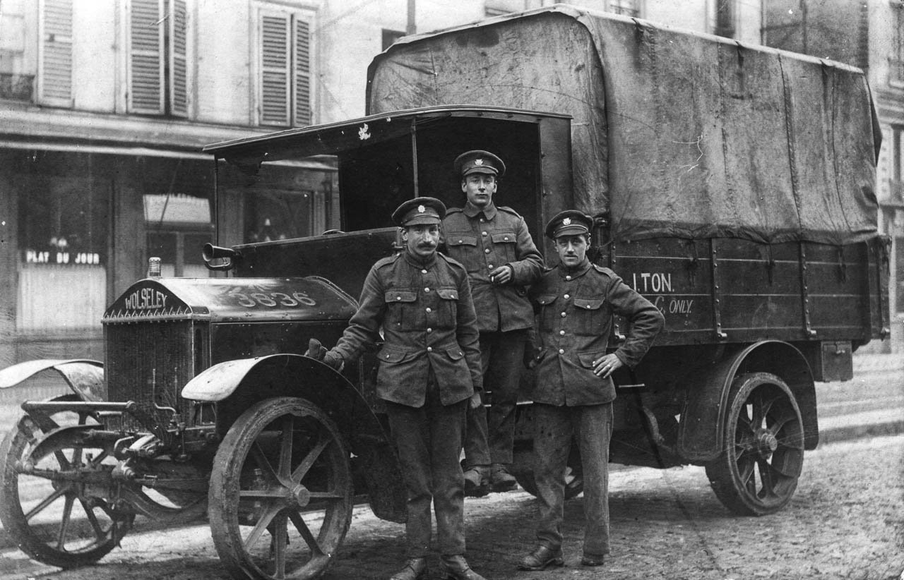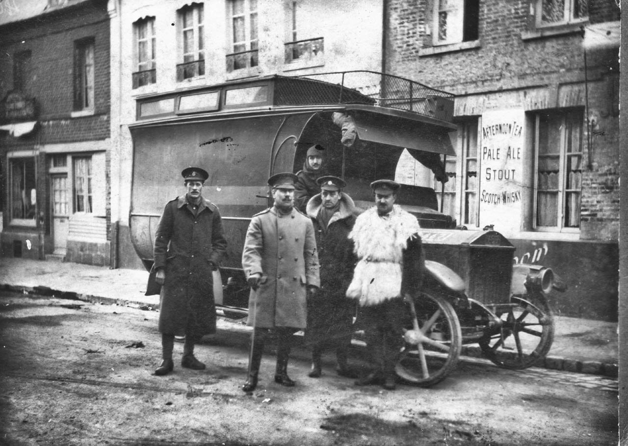 Giovanni (on left) with his crew and their Wolseley ambulance at Calais in 1916