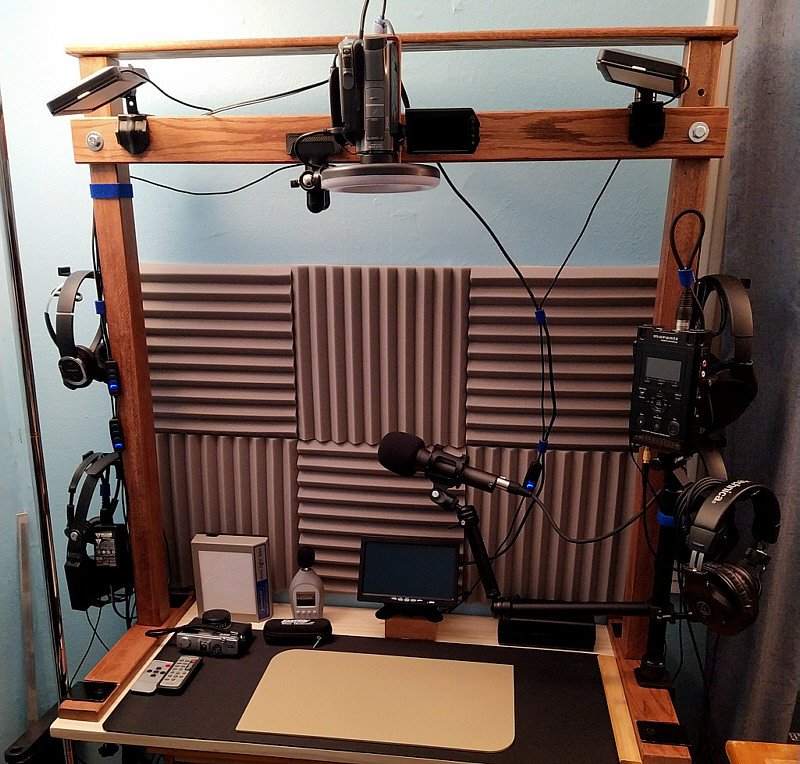 I added some lights. Then I replaced the tiny lights with larger lights. I also bought a microphone and audio recorder for separate audio. Video camera audio generally isn't that great, and I wanted more than cell phone video. I added some foam baffles to cut down on echo. I ended up swapping out this video camera with a small Sony ZV-1.