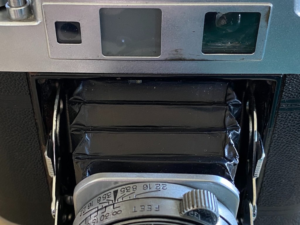 Rummaging virtually through the local online auction site a couple of weeks back, I spotted a rather interesting camera. My favourite type, being a MF folder, but one with a rather rare feature: brightlines in the viewfinder. Of course, I had to buy it!